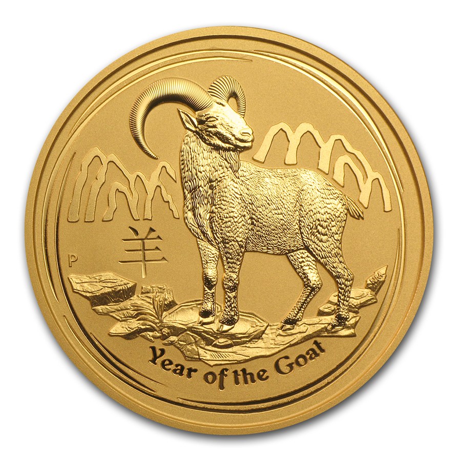 Золотая монета из серии "Лунный календарь" - год Овцы (козы) выпущена Пертским монетным двором в конце 2014 года. Эти поразительные золотые монеты отмечают наступление 2015 года – года Овцы (Козы) по китайскому календарю. Коза (овца) является восьмым животным в 12-летнем цикле китайского гороскопа. Золотая монета Лунар II Овца имеет традиционную пробу – 0,9999 долей чистого золота. Тираж монеты ограничен.