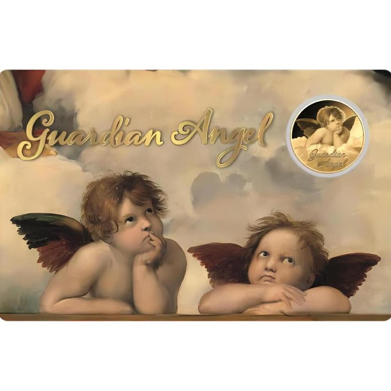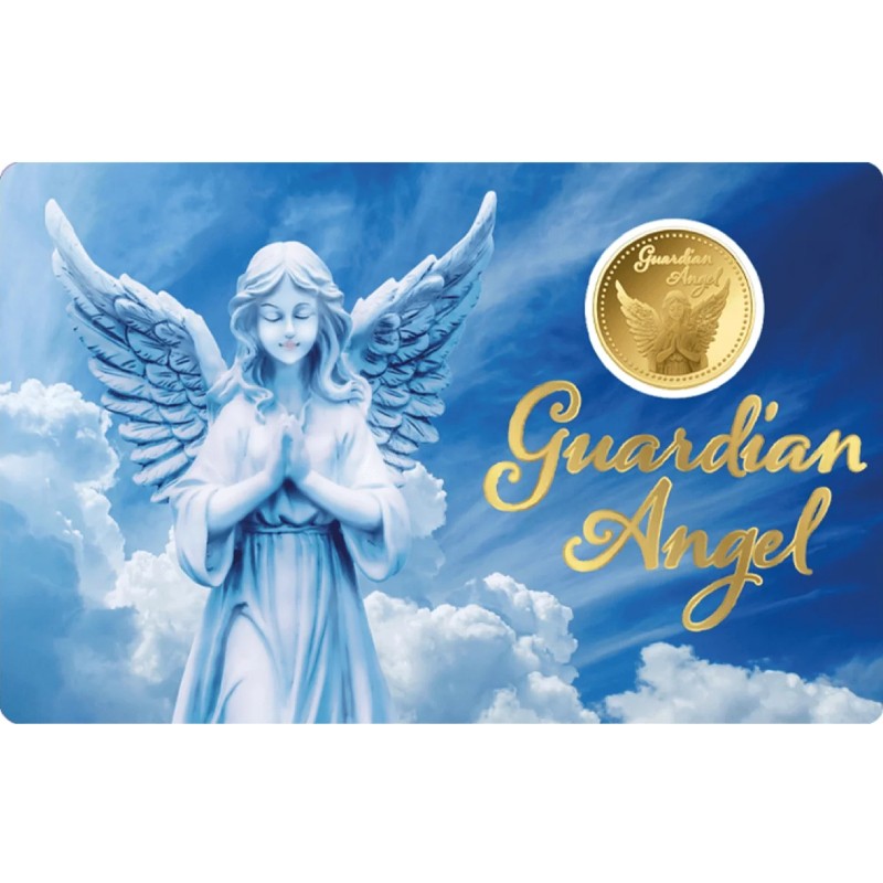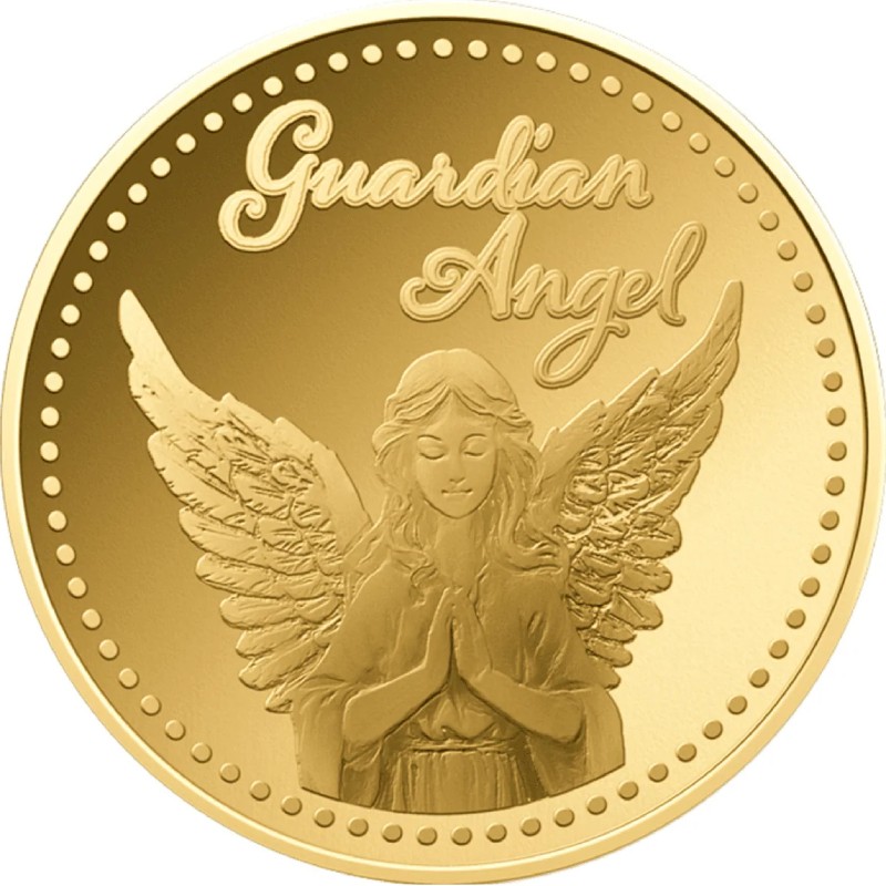 Эта потрясающая золотая монета весом 1/1000 унции посвящена ангелу-хранителю, который оберегает нас день и ночь. У неё диаметр 16 мм и качество пруф-лайк. Поставляется в карточке с сертификатом подлинности. Тираж: 50 000 штук.