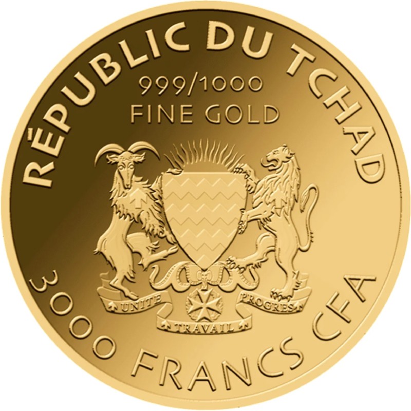На аверсе всех монет изображен герб Республики Чад. Вокруг герба надпись: REPUBLIQUE DU TCHAD 999/1000 FINE GOLD 3000 FRANCS CFA (страна-эмитент, номинал, проба золота).