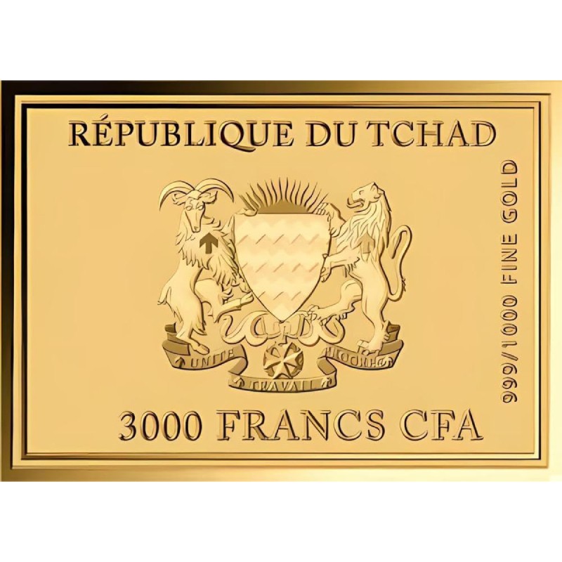 На аверсе всех монет изображен герб Республики Чад. Вокруг герба надпись: REPUBLIQUE DU TCHAD 999/1000 FINE GOLD 3000 FRANCS CFA (страна-эмитент, номинал, проба золота).
