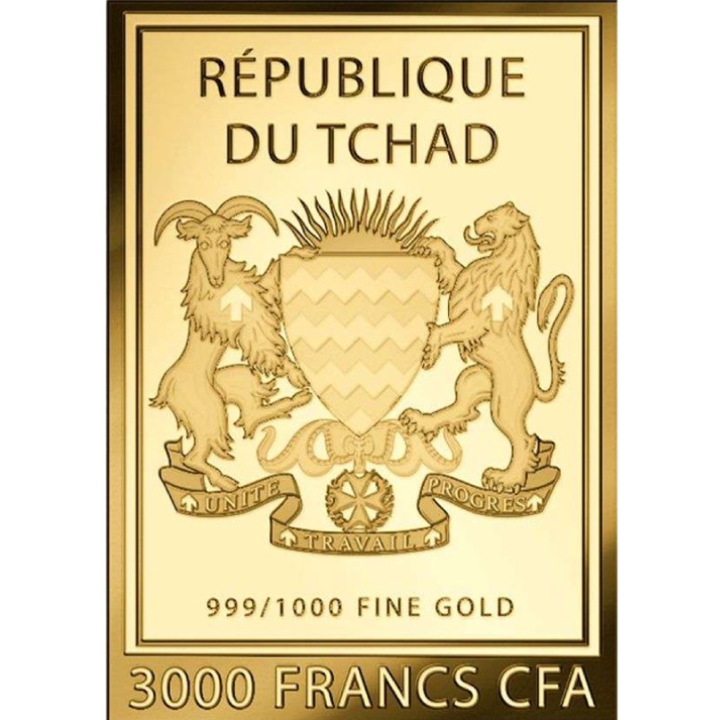 На аверсе всех монет изображен герб Республики Чад. Вокруг герба надпись: REPUBLIQUE DU TCHAD 999/1000 FINE GOLD 3000 FRANCS CFA (страна-эмитент, номинал, проба золота).