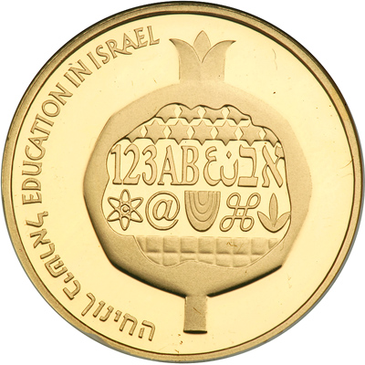 Золотая монета Израиля «Образование в Израиле» 2001 года выпуска является частью серии, посвященной 53-й годовщине обретения независимости Израиля. Редкая монета. Ограниченный тираж.