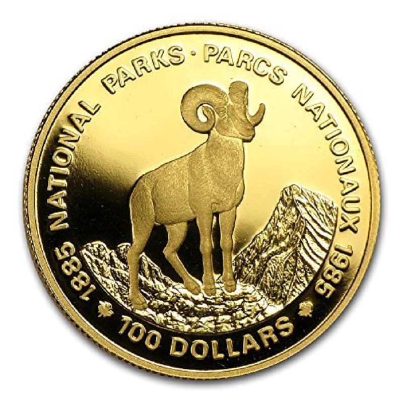Золотая монета, посвященная 100-летию образования канадской системы национальных парков, разработанной Гектором Гревиллем.