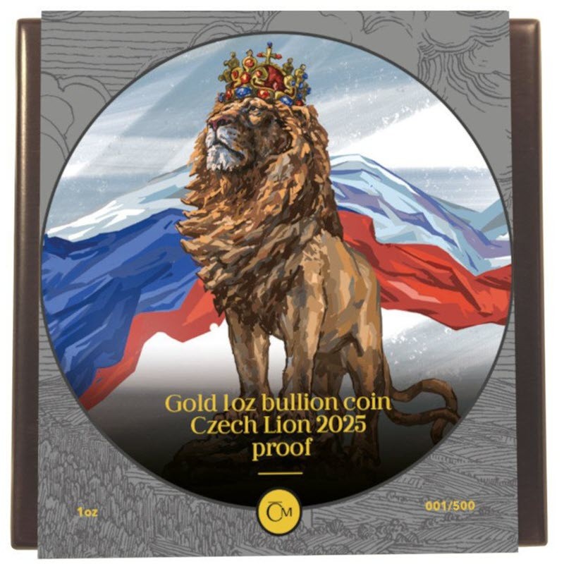 В 2017 году Чешский монетный двор впервые выпустил «Чешский лев», и в 2025 году она имеет новый дизайн. У нее качество пруф. Поставляется в оригинальном футляре с сертификатом подлинности. Тираж: 500 штук.