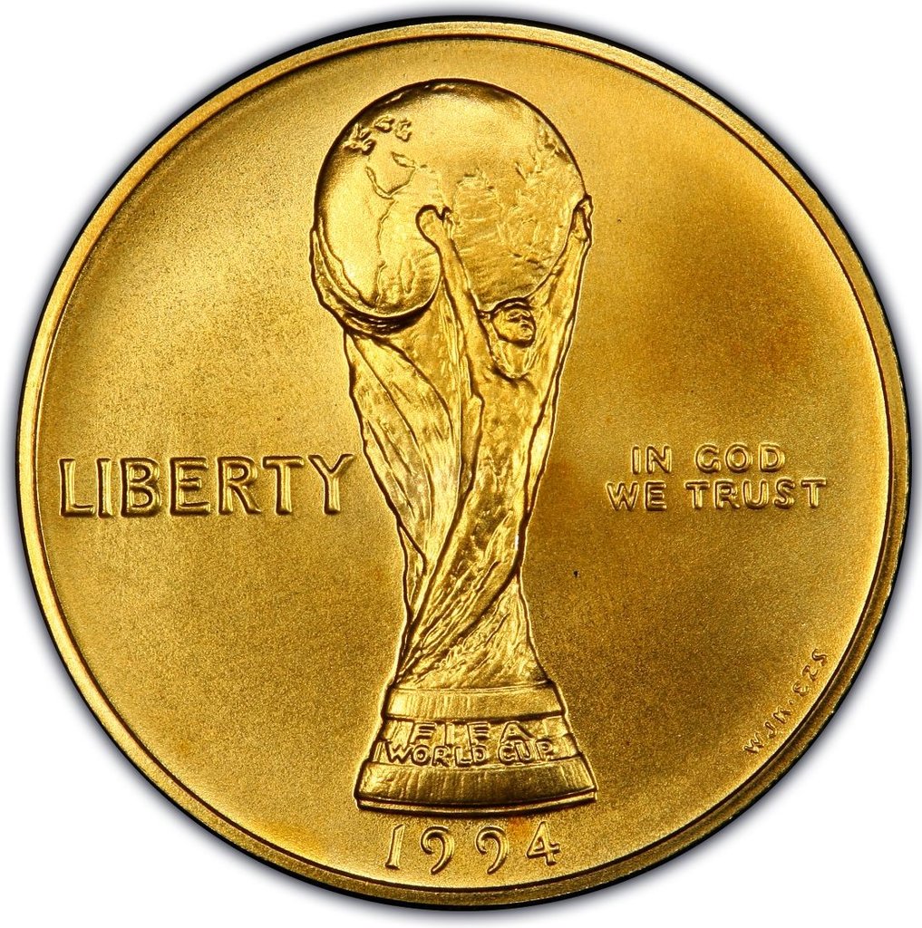 Золотая монета США "Чемпионат мира по футболу в США" 1994 г.в., 7.52 г чистого золота (Проба 900)