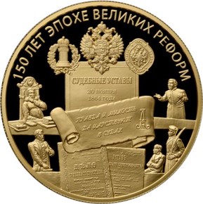 Золотая монета Банка России "150-летие начала эпохи Великих реформ" Учреждение Судебных Установлений от 20 ноября 1864 года"