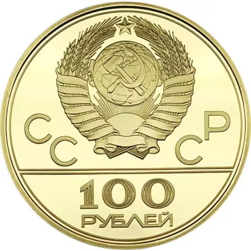 Золотая монета 100 рублей с изображением стадиона «Лужники», входит в состав серии из шести золотых монет «Игры XXII Олимпиады», выпуск которых был приурочен к проведению Олимпийских игр в Москве.