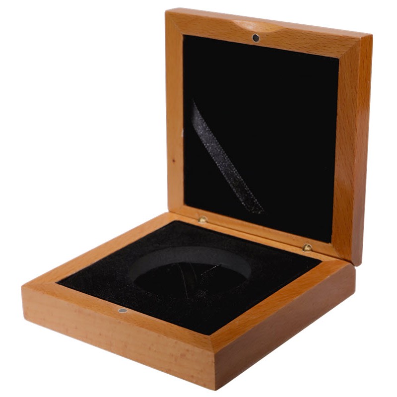Подарочный деревянный футляр желтого цвета для монет с капсулой диаметром 44 мм. Наружный размер: 90 Х 90 Х 25 мм. Флокированный ложемент черного цвета: 44 мм, глубина 6 мм.